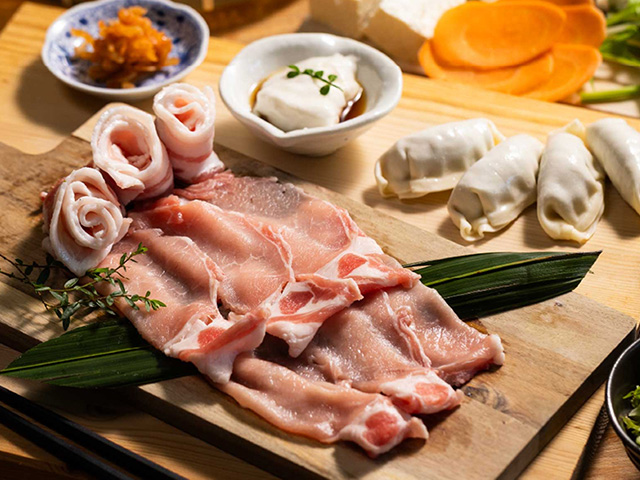 厳選された県産豚の甘みと旨味を堪能できる、特選しゃぶしゃぶコース。