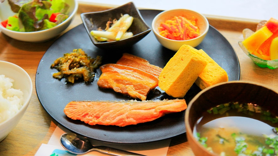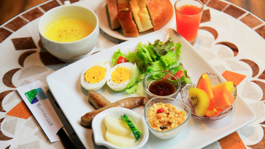 さわやかな朝の光とともに、地元の食材を使用した朝食をご用意いたします。